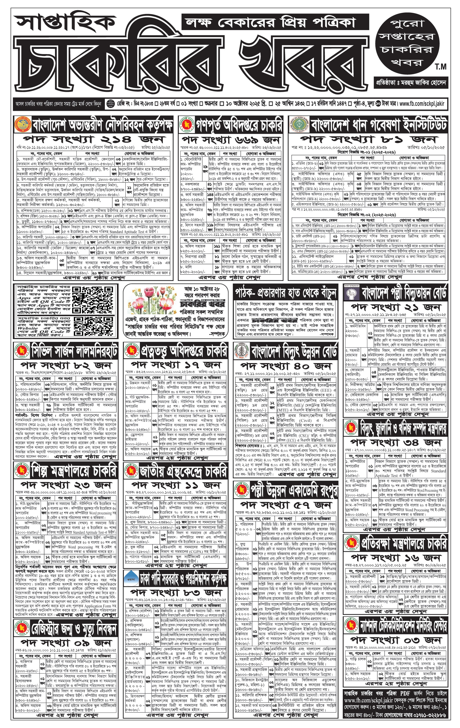 Saptahik Chakrir Khobor 17 October 2025 সাপ্তাহিক চাকরির খবর has been published to unemployed people. The Saptahik Chakrir Khobor on 17 October will be presented with the top job circular of this week. It’s the most important newspaper. Unemployed people wait a Whole week Long for this newspaper. All public & private job circulars are contained in this newspaper. Saptahik Chakrir Khobor is published every Friday & four times per month. Saptahik Chakrir Khobor is very useful for all unemployed people.