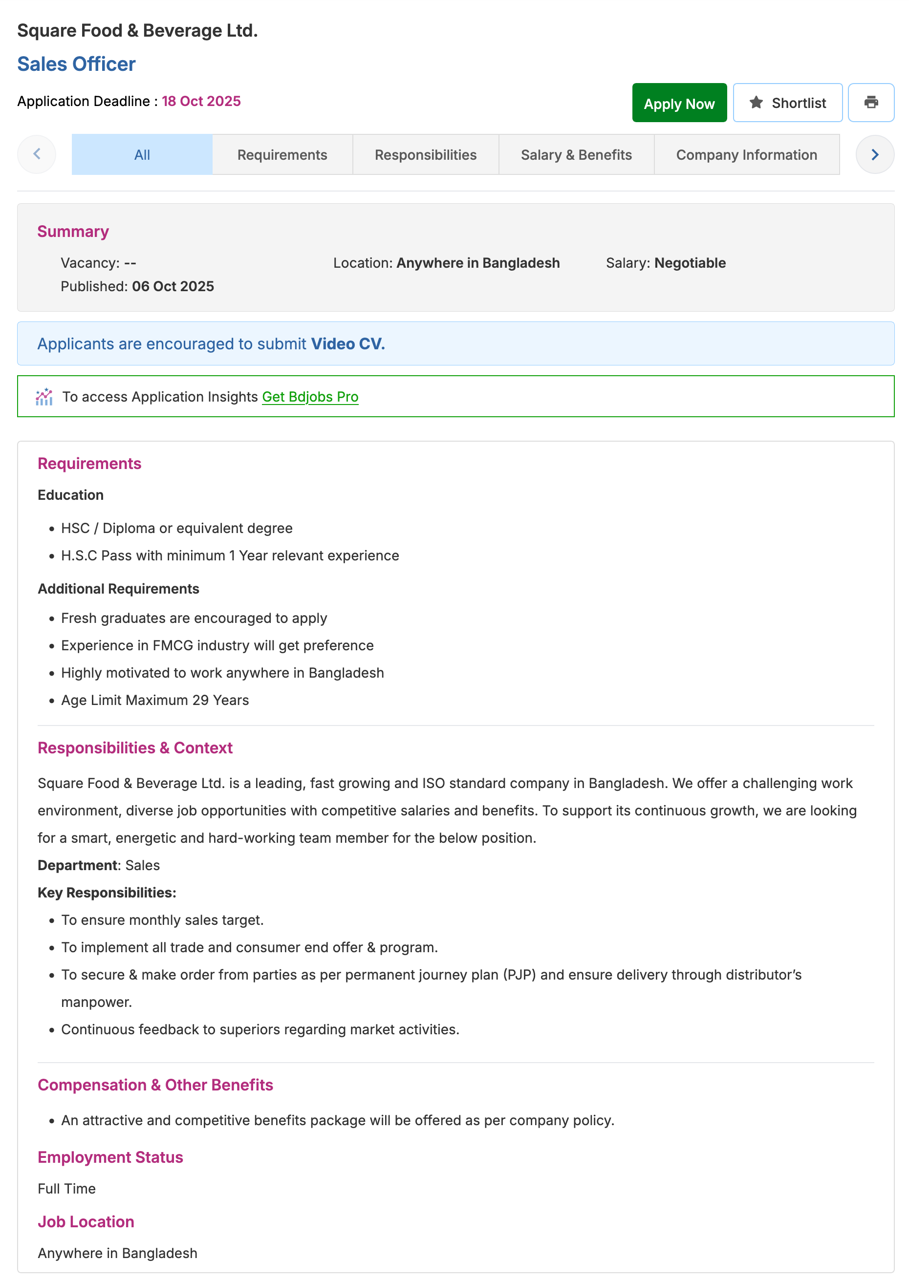 Check Square Food & Beverage Ltd. All Recent job Circular Posted On BD jobs here